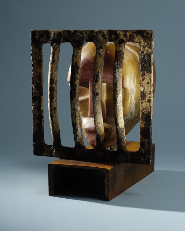Medium: White Carrara Marble and an Alabaster and Black Belgium Marble Base