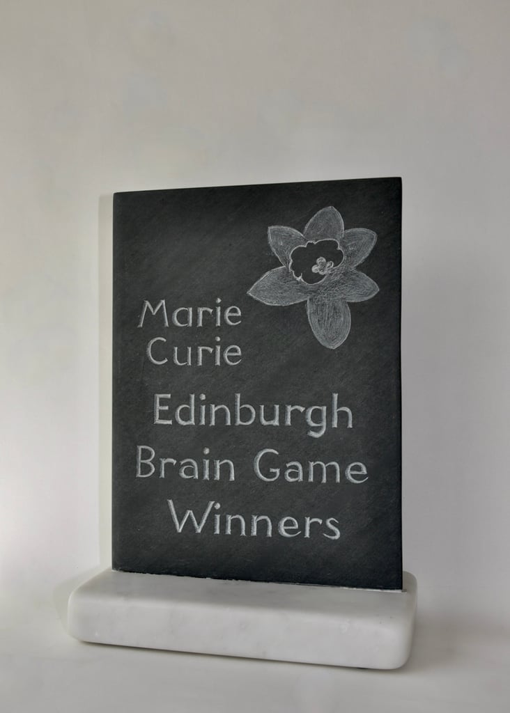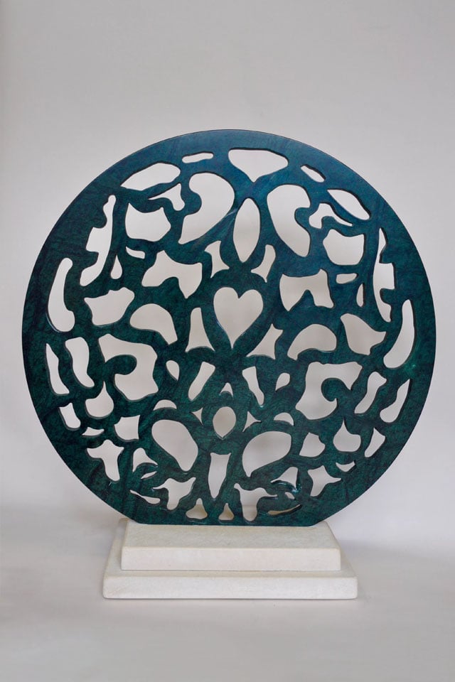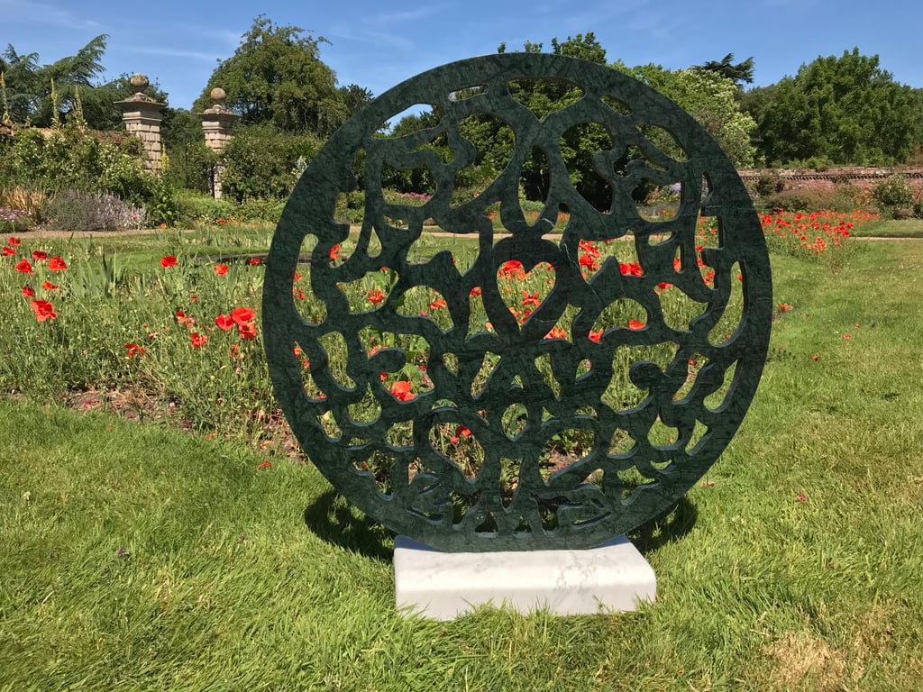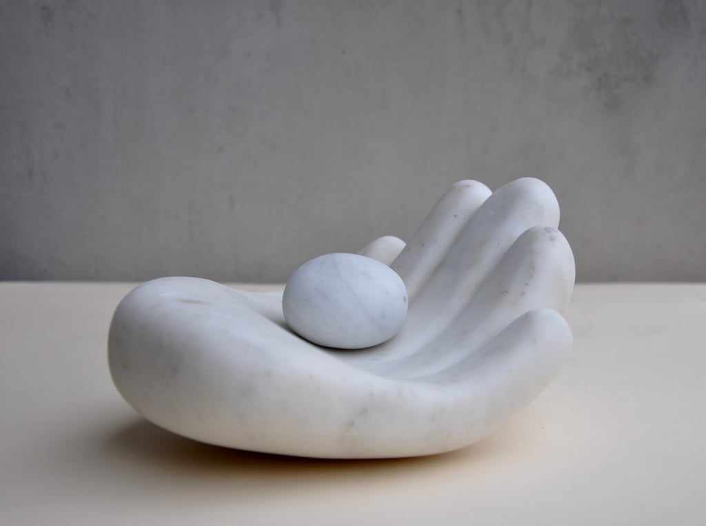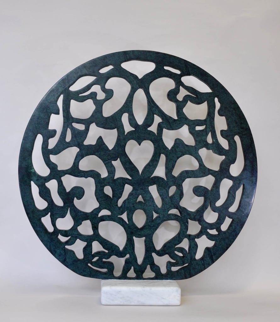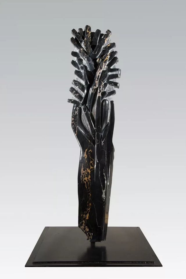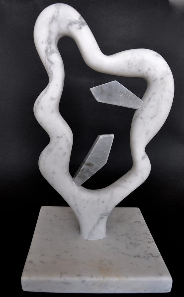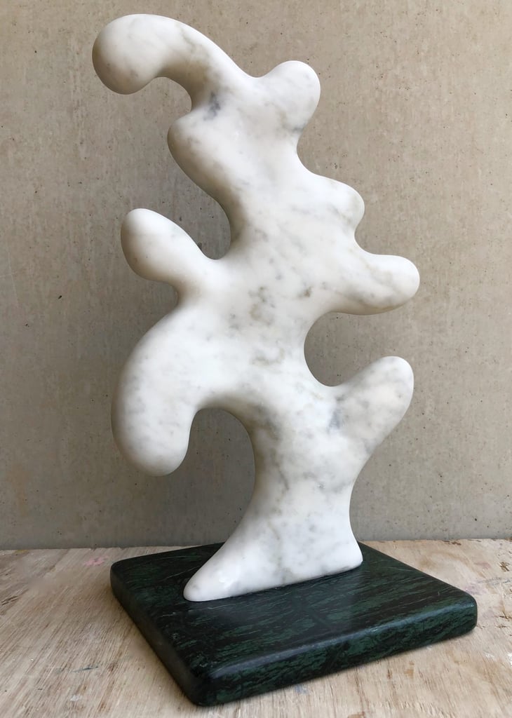 Are you looking for a gift for Christmas? Why not give this beautiful marble sculpture of Scottish flowers made by Simon Burns-Cox ? This work is made from White Italian Carrara and Black and Green Scottish Marble from The Isle of Skye, Scotland with dimensions of 35 x 24 x 17cm.